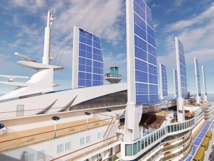 エコシップでは、従来のクルーズ船よりもCO2排出量を大幅に削減するために、ソーラーパネルや風力発電タービン を設置しています。これにより、船内の電力を補いながら、環境負荷を最小限に抑えることができます。