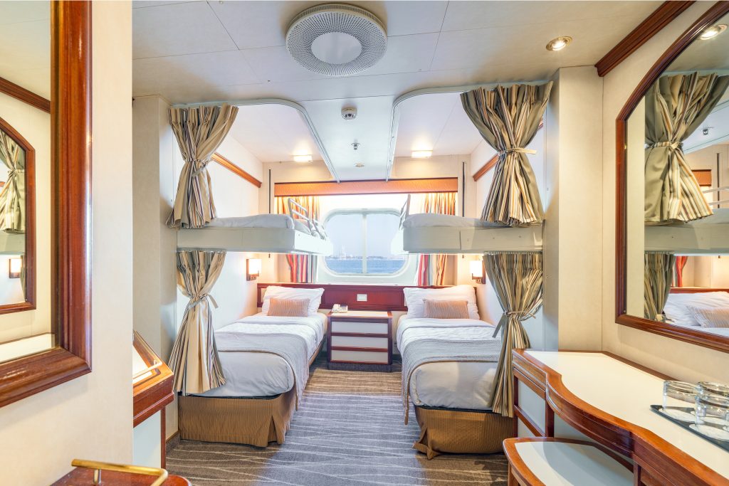 - 少し予算を上げて快適さを求めるなら「2人相部屋(インサイドキャビン)」