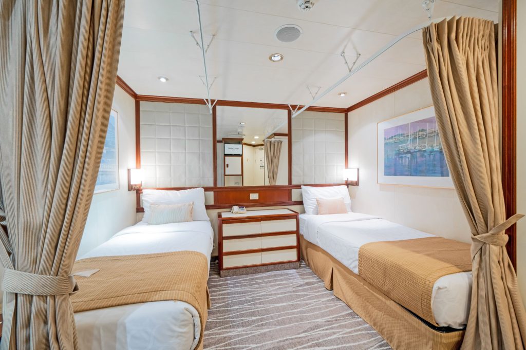 さらに、部屋のセキュリティにも工夫が凝らされています。各部屋には電子ロックが設置されており、自分専用のカードキーでのみ入室が可能です。また、貴重品を保管できるセーフティボックスも完備されているため、パスポートや現金、貴重なアクセサリーなども安全に保管できます。これにより、外出時や船内のイベント参加中でも、貴重品の盗難を心配せずに過ごせます。